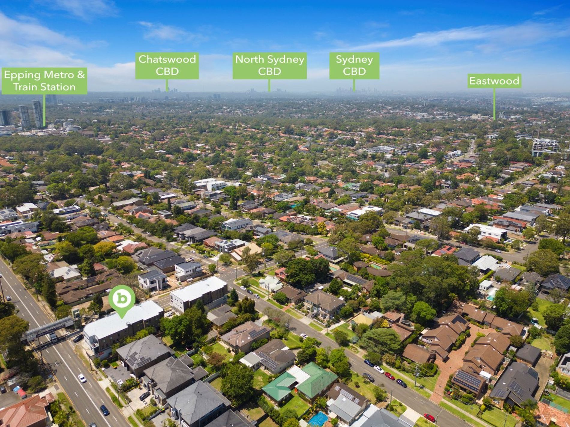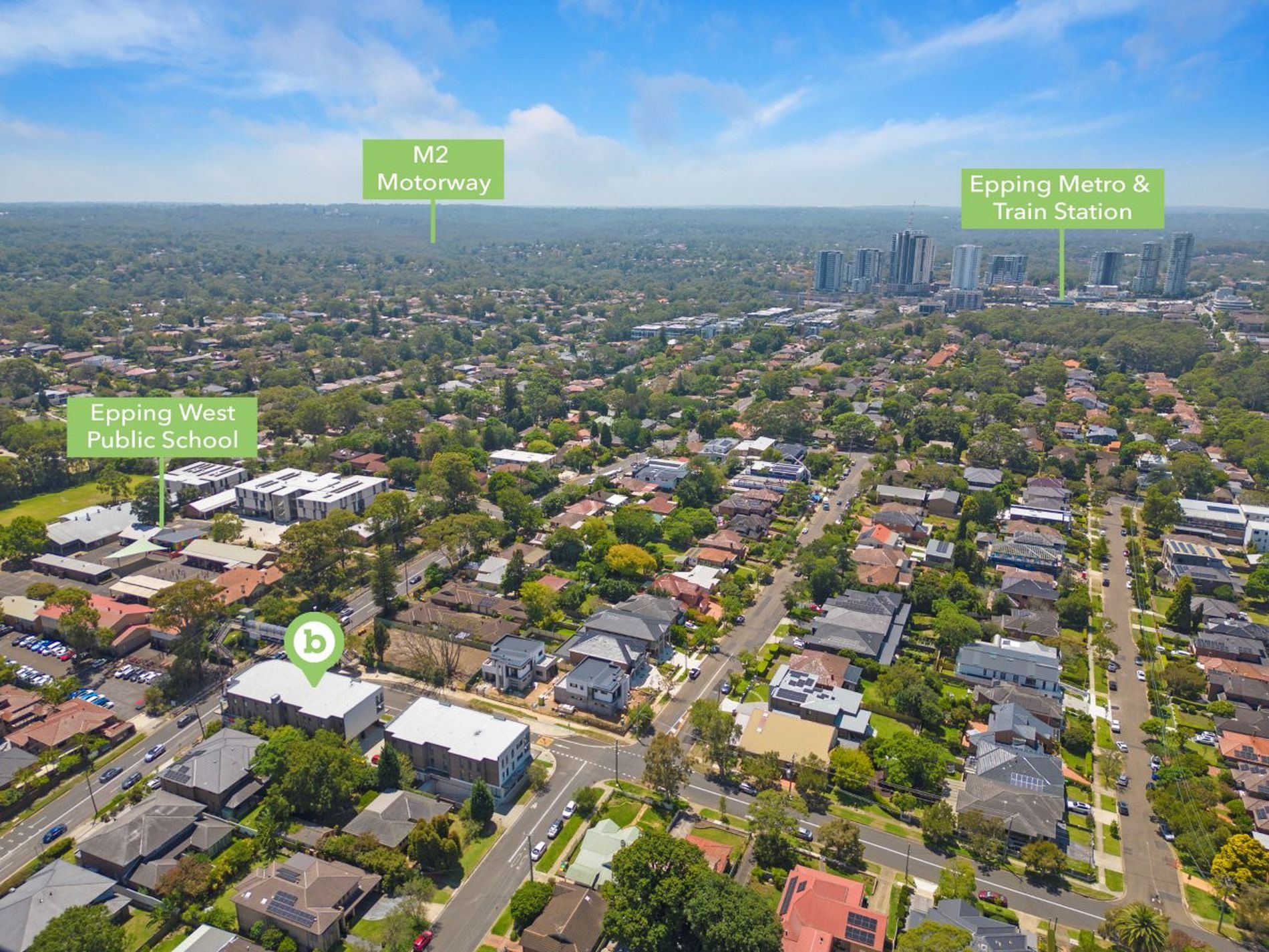Perfectly positioned near the corner of Ryde Street and the busy Carlingford Road Midson Road and Boronia Avenue, across the road from Epping West Public School, two kilometres southwest of Epping Railway Station, Metro Station and retail precinct, five kilometres west of Macquarie Park, 10 kilometres northeast of the Parramatta CBD and 18 kilometres northwest of the Sydney CBD. The M2 Motorway located nearby provides access and excellent connection to the other motorways throughout Sydney and express access to the Sydney CBD and Airport.