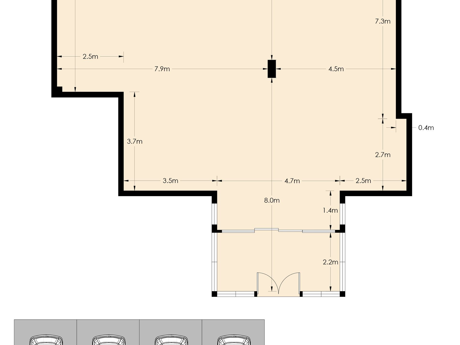 - Four car spaces, including one at grade parking, three secure basement car spaces and unrestricted street parking