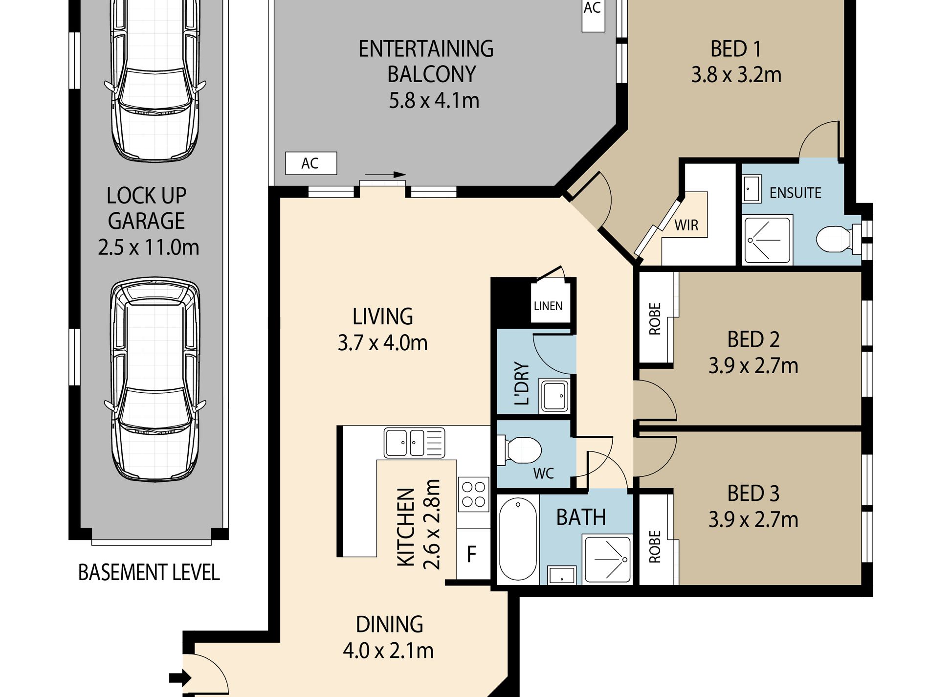 - Master bedroom with ensuite, air conditioner and walk in wardrobe
