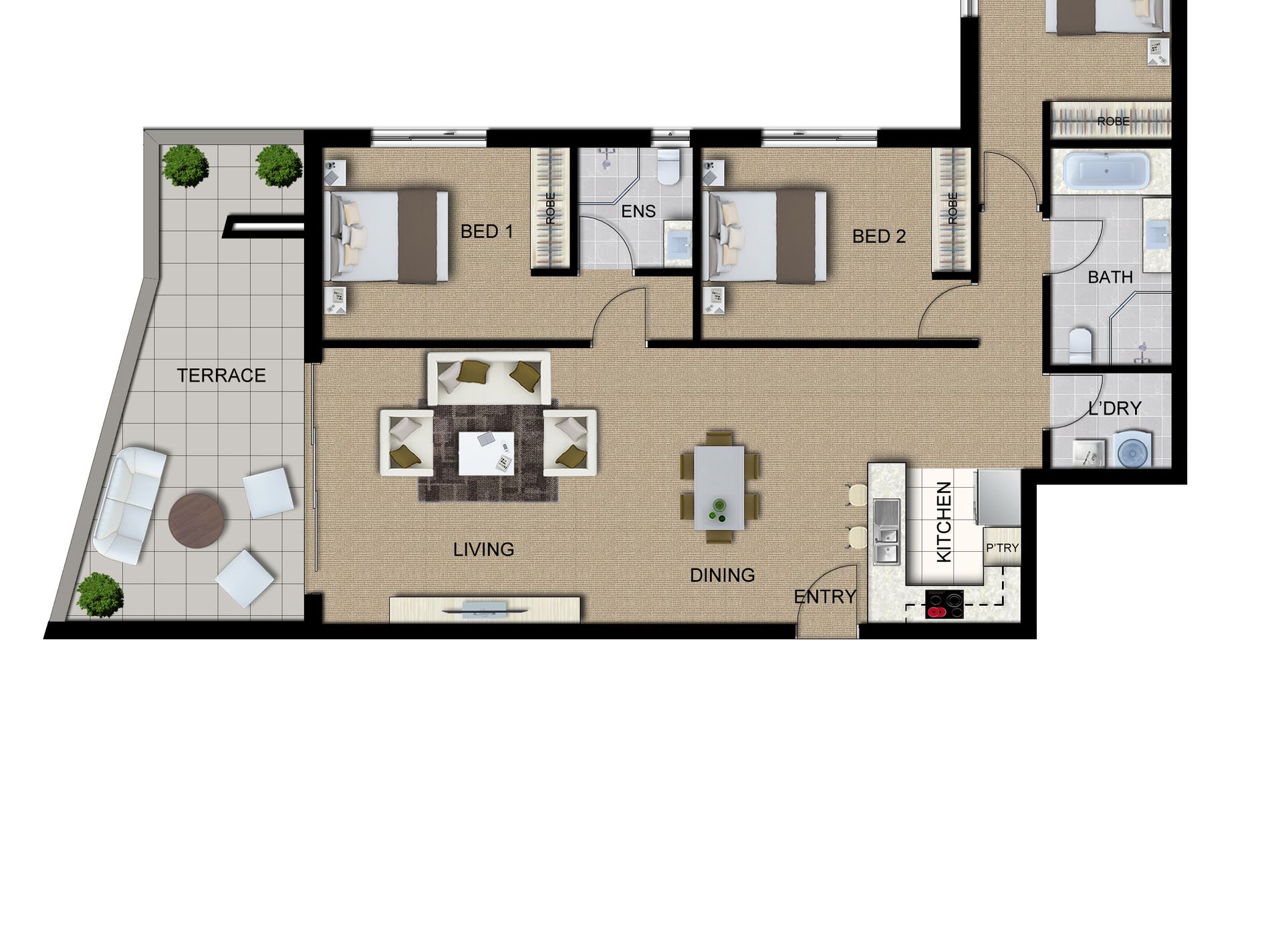 - Some 3 bedroom apartments available with 2 car spaces