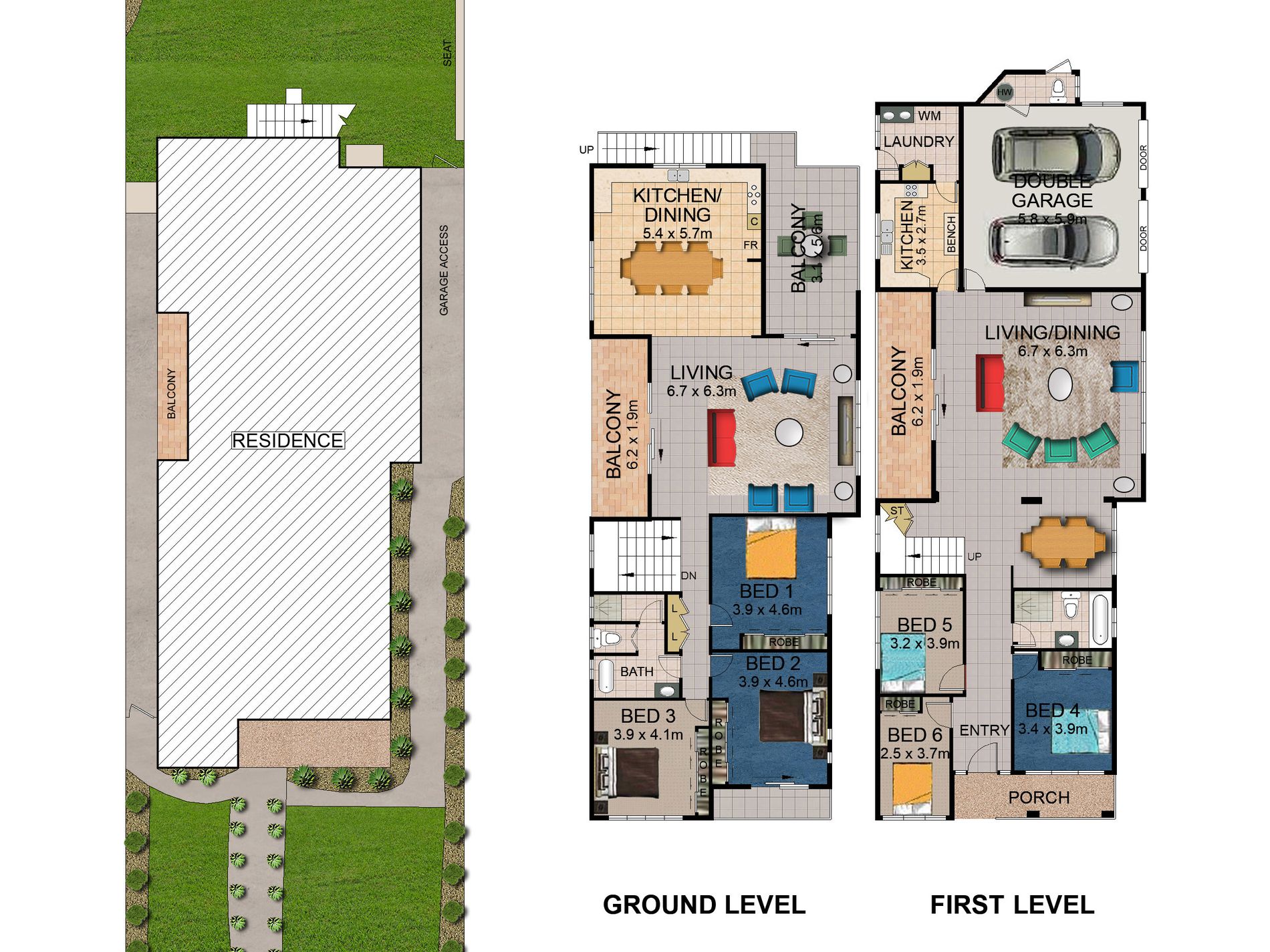 - Two huge lounge and dining areas (all living areas with tiled floors)