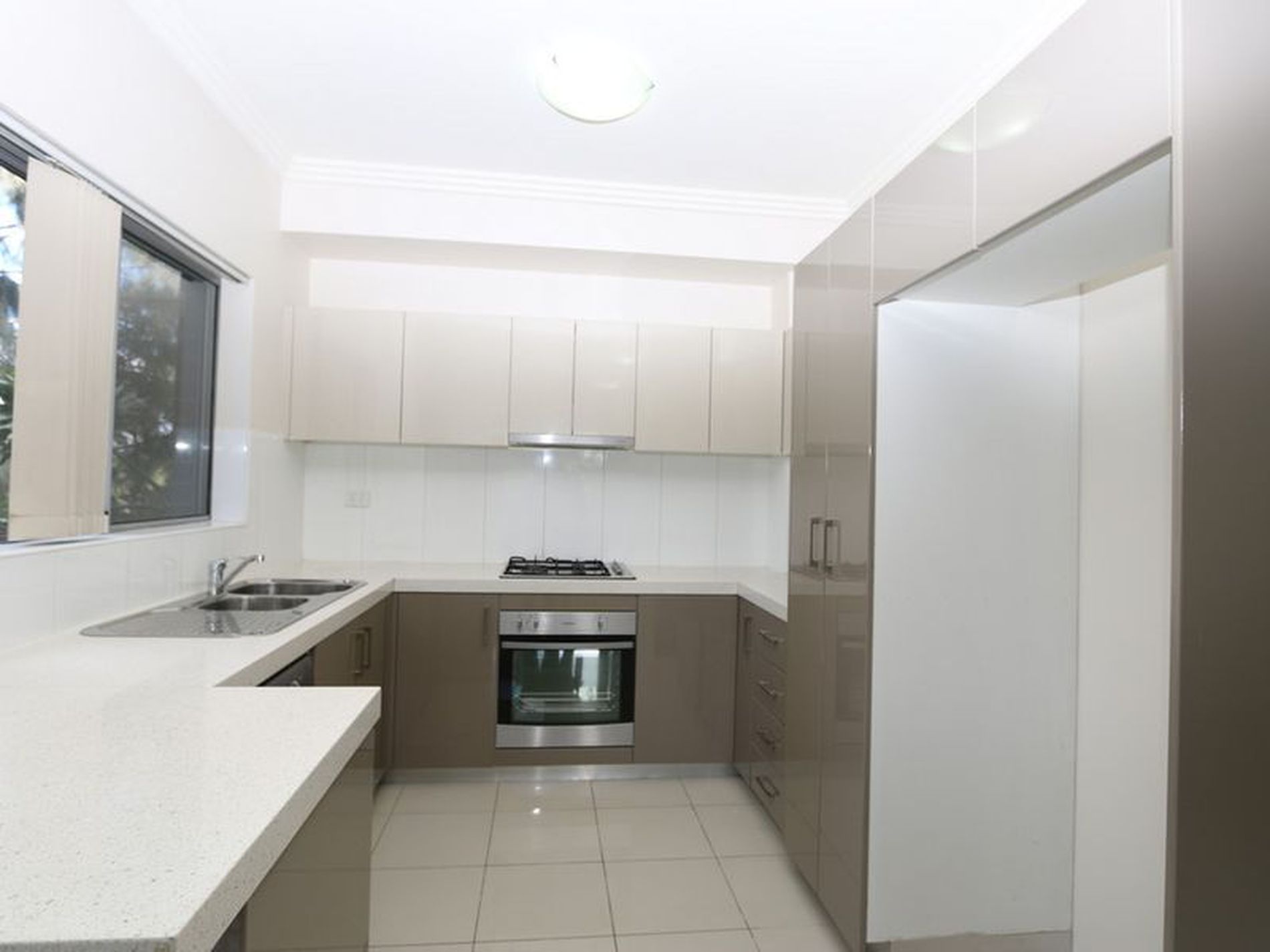 - Designer kitchen with stone bench top, stainless steel appliances including gas cook top, under bench oven, range hood and dishwasher